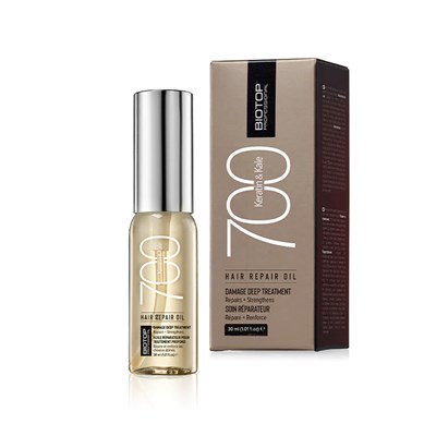 700 Keratin + Kale Hair Repair Oil is a deep-conditioning and revitalizing rinseable oil treatment formulated to help smooth and repair damaged, coarse, chemically treated, dry or frizzy hair. This unique pH-balancing treatment replenishes essential Keratin Proteins, Vitamins & Amino Acids to strengthen the hair and seal the cuticle, locking in moisture and nutrients. Hair appears healthier with less damage and added softness & shine.
